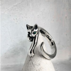 ガッシュ/【ネコ シルバーリング】緑の瞳の指に絡みつく猫リング|gush