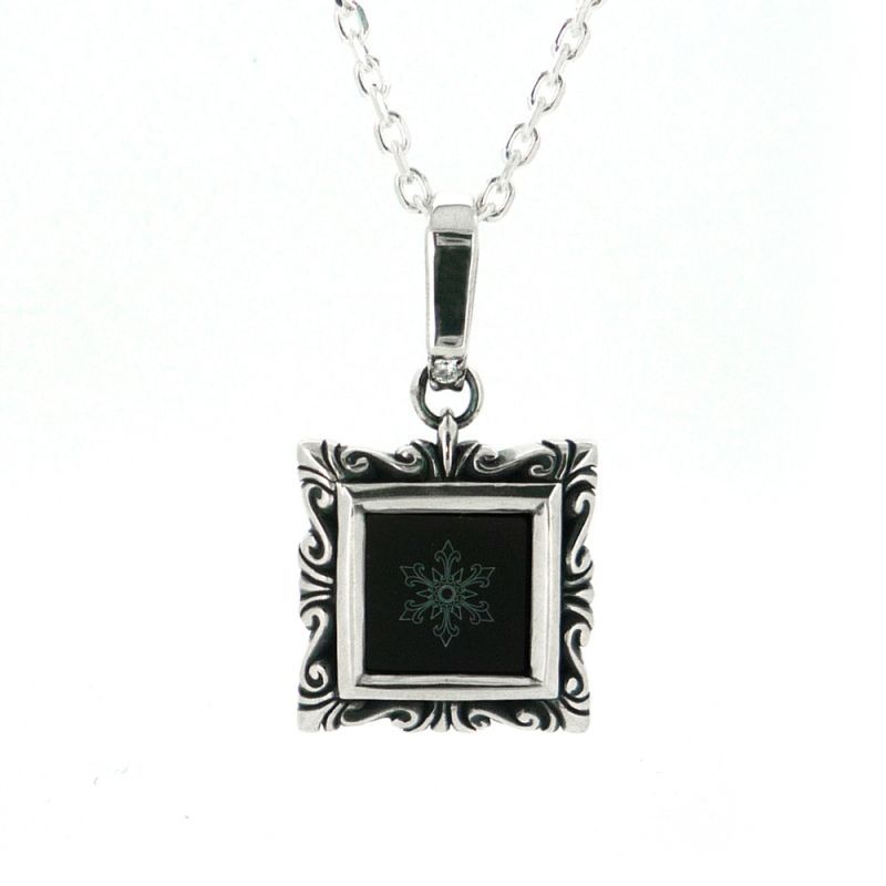 中央にsnowflakeをレーザー彫りしたオニキスを使用したペンダントトップです。