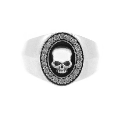 中心部のスカルをジルコニアで装飾されたデザインリング。