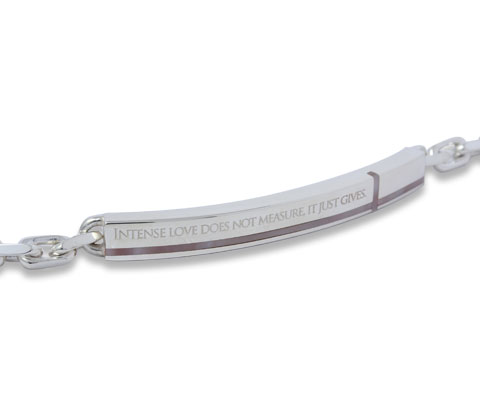 シェルのプレートにメッセージが彫刻されたシルバーブレスレットです。