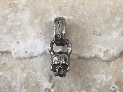 朽ちたスカルのバチカン部分に「memento mori」を刻んだシルバーペンダント。