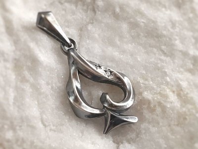 捻りが入った流れるような曲面で構成されたスペードモチーフのシルバーペンダント。