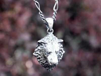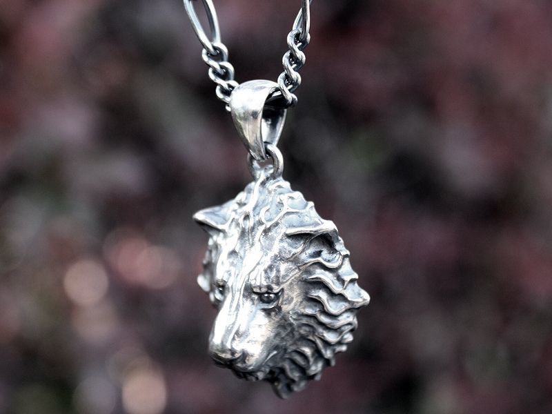 強さを感じさせつつもどこかアンニュイな雰囲気も感じさせるような表情をしたライオンモチーフのシルバーペンダント。