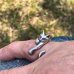 指に絡みついてひと息ついているような仕草のスターリングシルバー製猫リング。