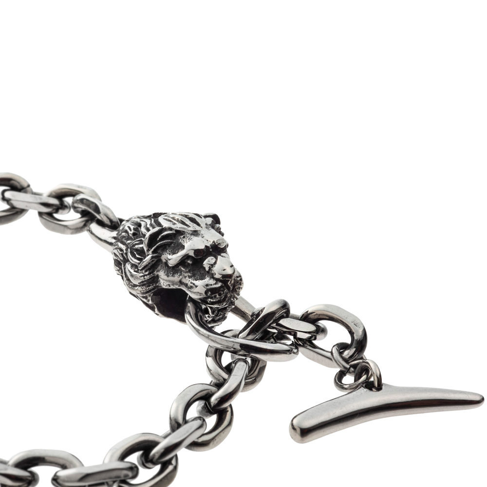 リングを噛んだライオンにTバーで留める形式のステンレス製のブレスレットです