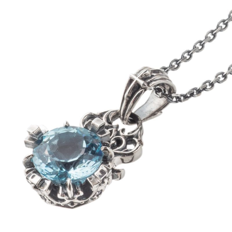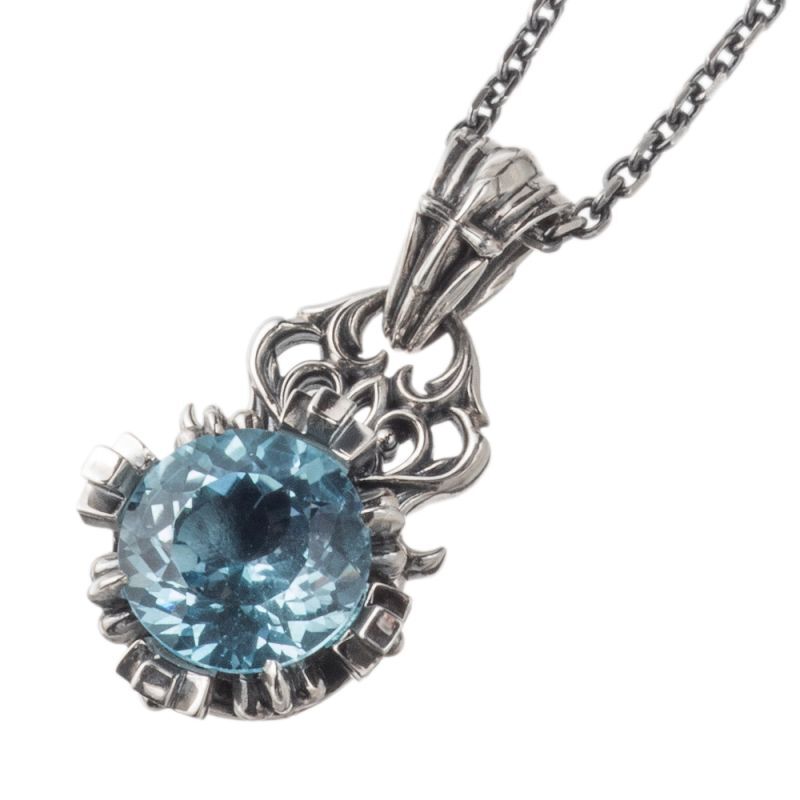 煌めくブルーの色合いが美しいブルートパーズを王冠型の台座にセットしたシルバーペンダントです。