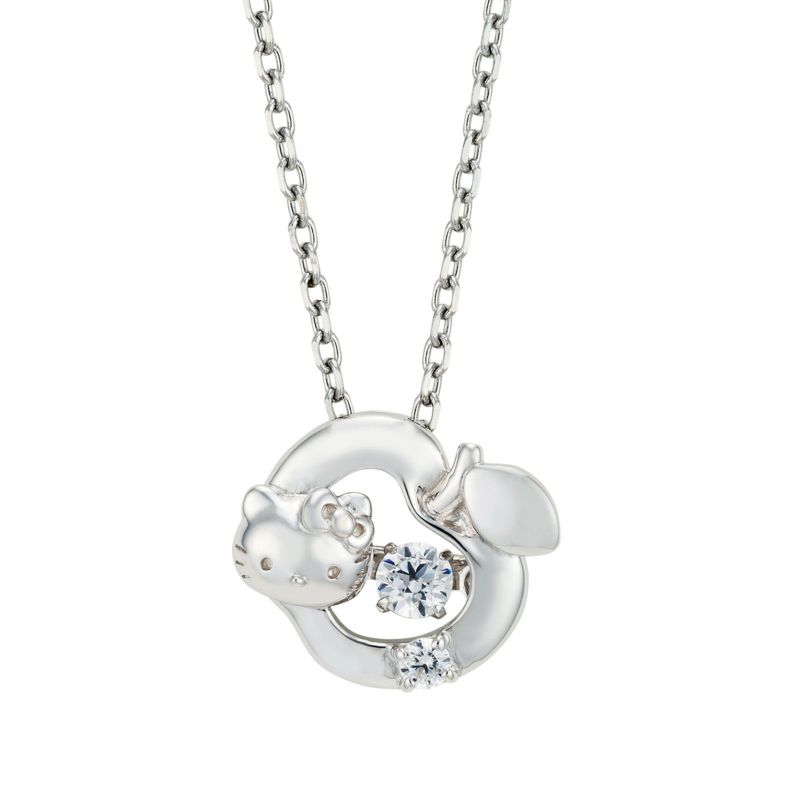 りんごをモチーフにしたフレームにキティをデザインし、キュービックジルコニアを添えた可愛いデザイン♪