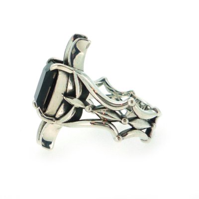 芽生えを表現したスモーキークォーツの透かしリング「sprout ring」/ Ark silver accessories